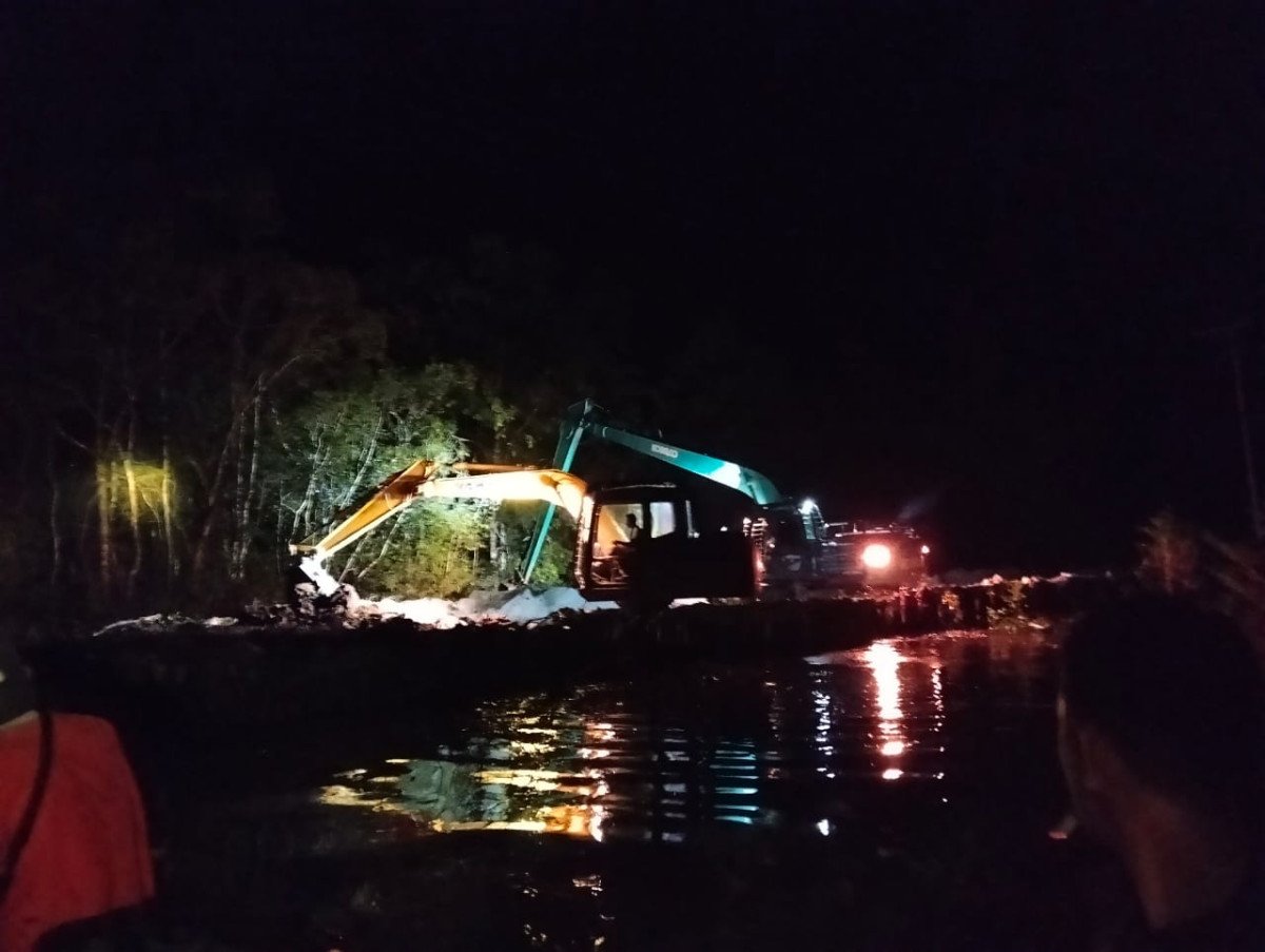 Barito Selatan – Guna mempercepat proses pembukaan jalan dalam program TMMD Ke-124 Kodim 1012/Buntok, alat berat jenis excavator terus dioperasikan hingga larut malam. Kegiatan ini berlangsung di Desa Talio, Kecamatan Karau Kuala, Kabupaten Barito Selatan.