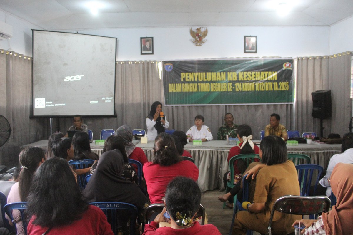 Barito Selatan, 30 Mei 2025 – Dalam rangkaian kegiatan TNI Manunggal Membangun Desa (TMMD) ke-124, Satgas dari Kodim 1012/Buntok menggelar penyuluhan Keluarga Berencana (KB) dan kesehatan di Balai Desa Talio, Kecamatan Karau Kuala, Kabupaten Barito Selatan. Kegiatan ini bertujuan meningkatkan pemahaman masyarakat terkait pentingnya menjaga kesehatan keluarga dan pengendalian angka kelahiran.