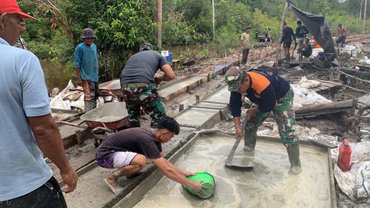 Kondisi medan yang menantang tidak menyurutkan semangat Satgas dalam menyelesaikan pengecoran. Mereka juga dibantu oleh warga desa yang ikut serta membantu proses agar pekerjaan dapat selesai tepat waktu.