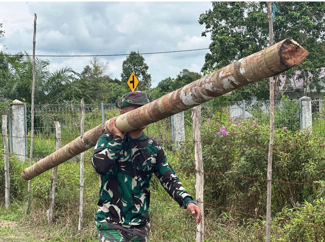 Barito Selatan – Satgas TMMD Kodim 1012/Buntok terlihat aktif mengangkut material untuk pembangunan kandang ayam potong di lokasi Ketahanan Pangan, Jalan Urbanus Marcun, Sababillah, Kecamatan Dusun Selatan, Kabupaten Barito Selatan. Kegiatan ini merupakan bagian dari program TMMD yang mendukung ketahanan pangan pemerintah.