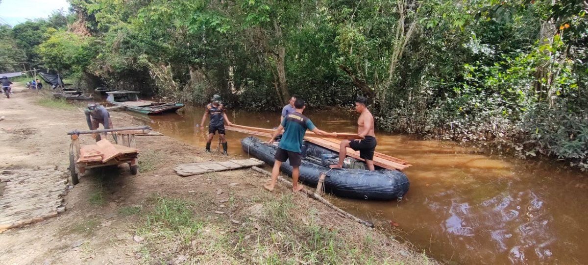 Satgas TMMD Kodim 1012/Buntok Gunakan Perahu Angkut Material Pembangunan