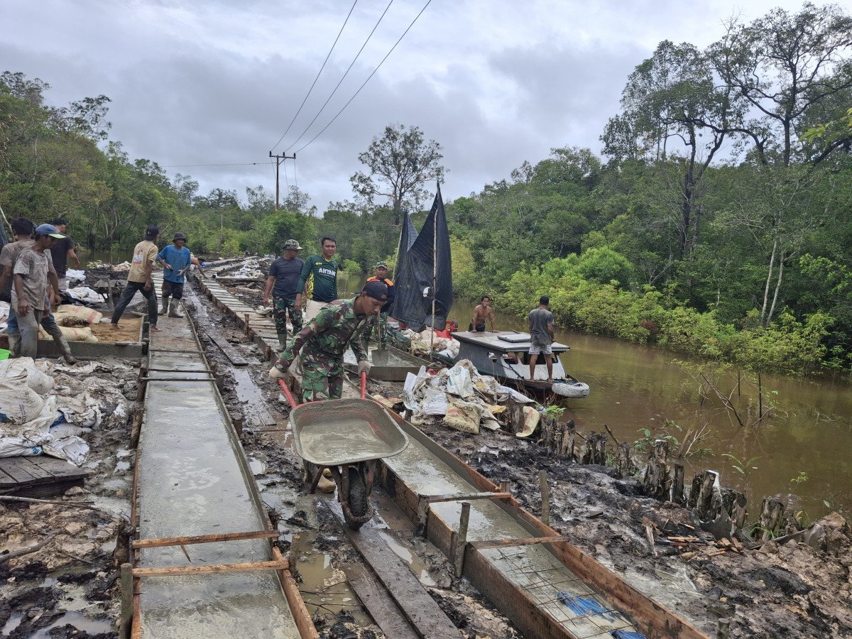 Satgas TMMD Kodim 1012/Buntok Lansir Semen Pakai Arco di Jalan Desa Talio