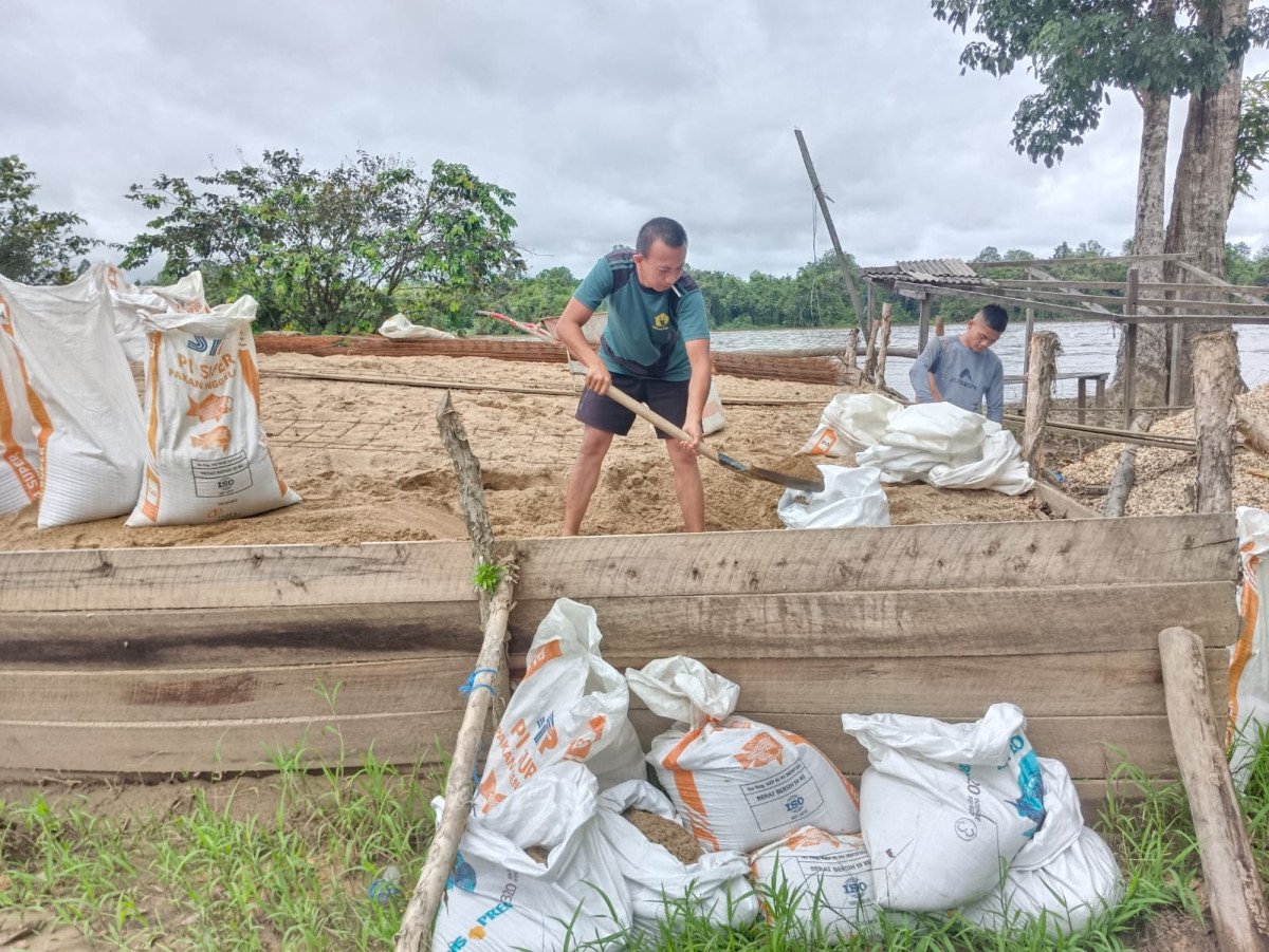 Barito Selatan – Satgas TMMD Kodim 1012/Buntok sedang melaksanakan pengisian karung pasir sebagai persiapan bahan material yang akan diangkut menggunakan perahu menuju lokasi kegiatan TMMD Ke-124. Metode pengangkutan ini dilakukan mengingat medan yang sulit dilalui kendaraan darat di kawasan sasaran.