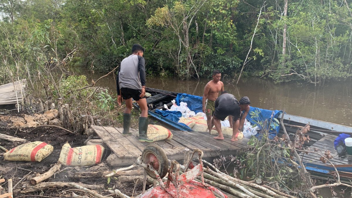Satgas TMMD Kodim 1012/Buntok Naikkan Material Semen ke Lokasi Jalan Desa Talio