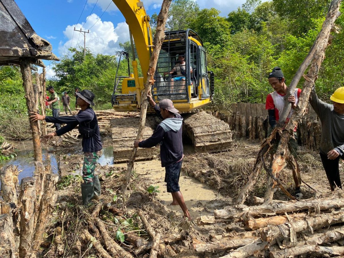 Karau Kuala, Barsel – Satgas TMMD Reguler Ke-124 Kodim 1012/Buntok melanjutkan pembangunan infrastruktur di Desa Talio dengan melakukan pemasangan cerucuk pada Jumat (23/05/2025). Pekerjaan ini dilakukan untuk memperkuat dasar jalan yang menjadi akses utama menuju Desa Danau Ganting.