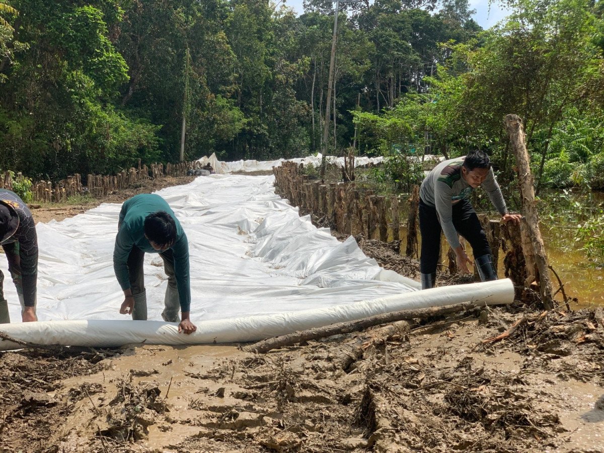 Dansatgas TMMD Reguler Ke-124 Kodim 1012/Btk Letkol Inf Langgeng Pujut Santoso, S.E., M.Han. mengatakan, “Pemasangan geotekstil ini sangat penting agar badan jalan tidak cepat rusak. Tanah di lokasi cukup labil, sehingga geotekstil berfungsi menstabilkan lapisan bawah