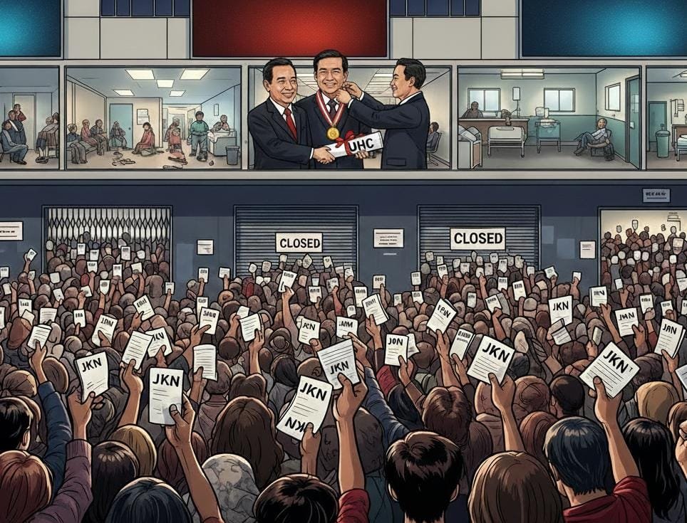 Akibatnya, UHC justru menciptakan situasi dimana masyarakat memperoleh “tiket masuk” ke sistem kesehatan, tetapi belum tentu mendapat “tempat duduk” ketika mereka benar-benar membutuhkan layanan. Antrean panjang, rujukan berbelit, serta beban fasilitas kesehatan yang melebihi kapasitas menjadi gejala bahwa infrastruktur belum mampu mengimbangi kenaikan beban peserta JKN.