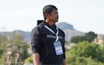 Menpora Dito bersama Presiden Jokowi dan Ketua Umum PSSI Erick Thohir tampak turun ke lapangan. Rombongan menyalami pelatih Shin Tae-yong serta Jay Idzes dan kawan-kawan.